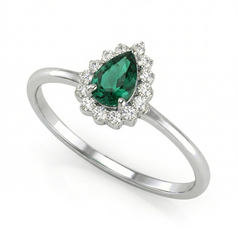 Description: Diamond & Emerald Cluster Ring, Set with Pear Cut Emerald & Brilliant Cut Diamonds, Set in 9ct or 18ct White Gold or Platinum