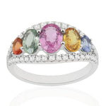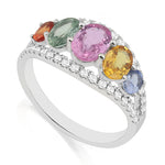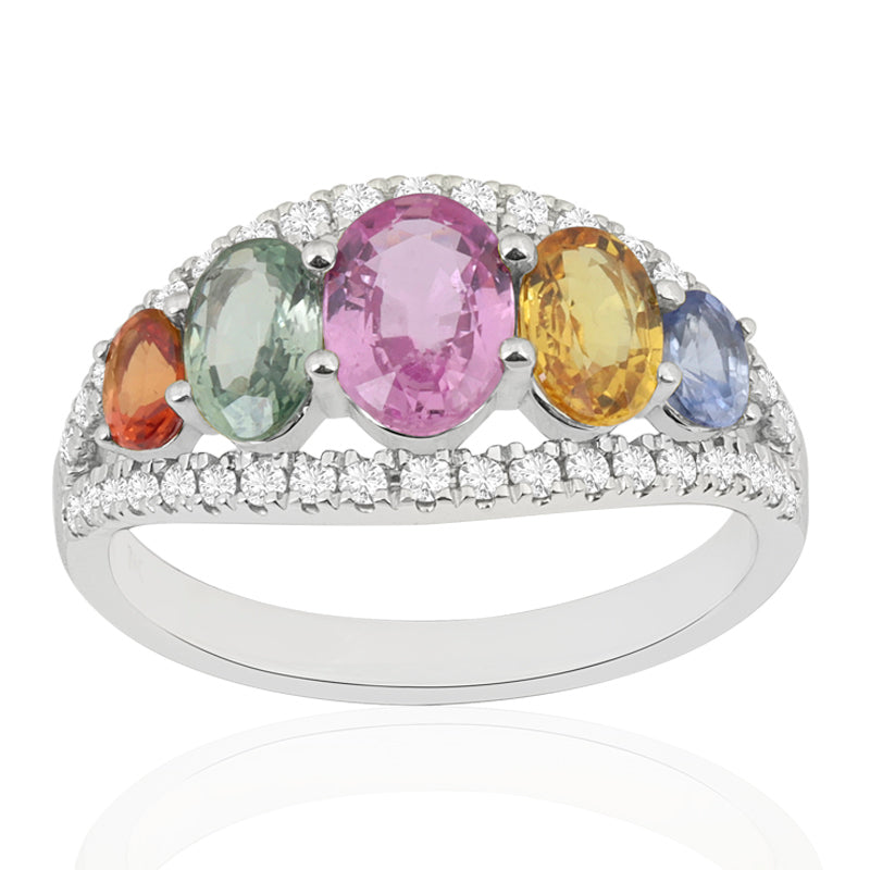 Description: Diamond & Colour Sapphire Ring, Set with Oval Cut Sapphires & Brilliant Cut Diamonds, Set in 9ct or 18ct White Gold