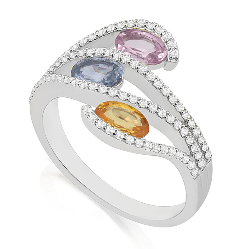 Description: Diamond & Colour Sapphire Ring, Set with Oval Cut Sapphires & Brilliant Cut Diamonds, Set in 9ct or 18ct White Gold