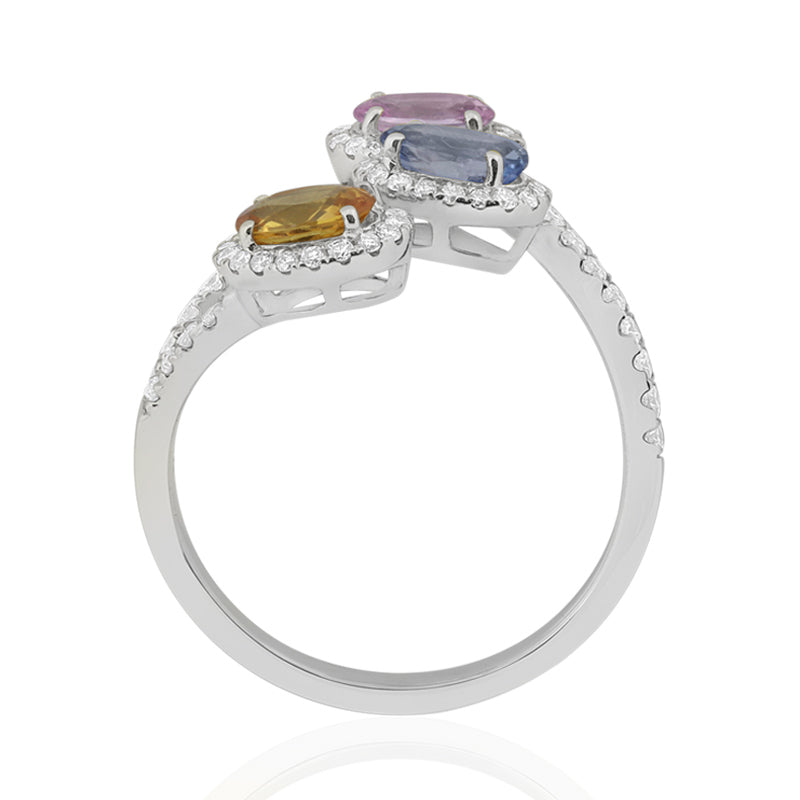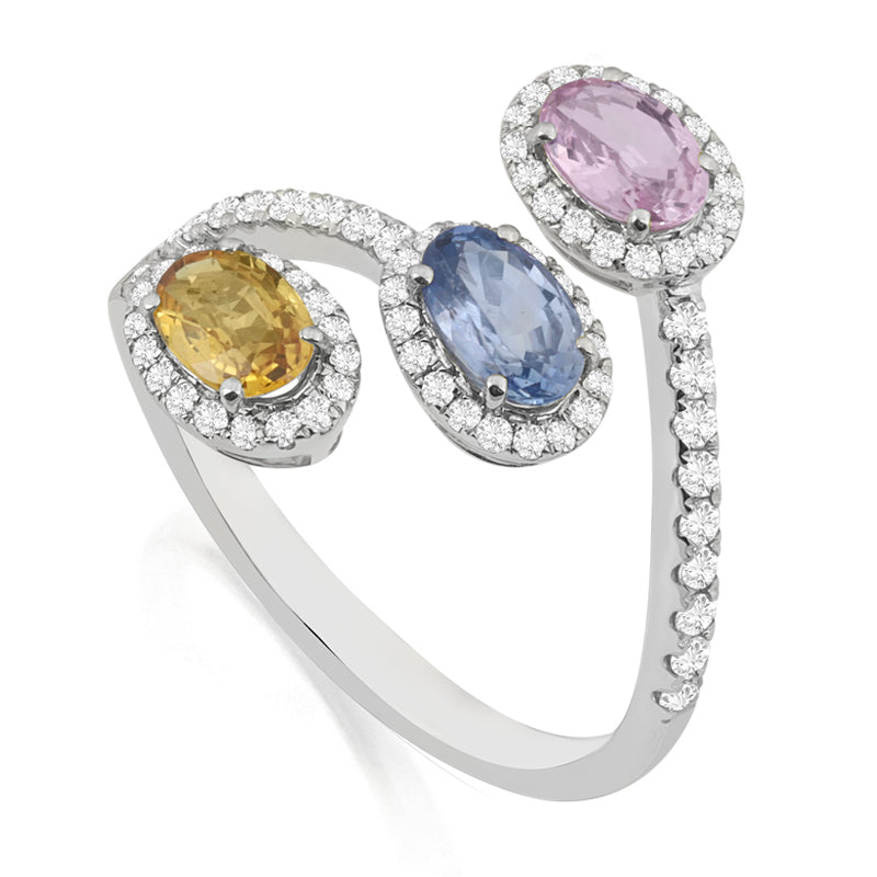 Description: Diamond & Colour Sapphire Ring, Set with Oval Cut Sapphires & Brilliant Cut Diamonds, Set in 9ct or 18ct White Gold