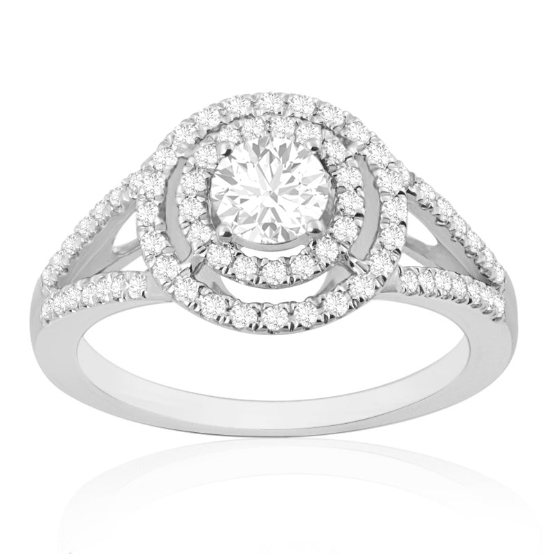 Description: Diamond Double Halo Cluster Ring, Set with Brilliant Cut Diamonds, Set in 9ct or 18ct White Gold