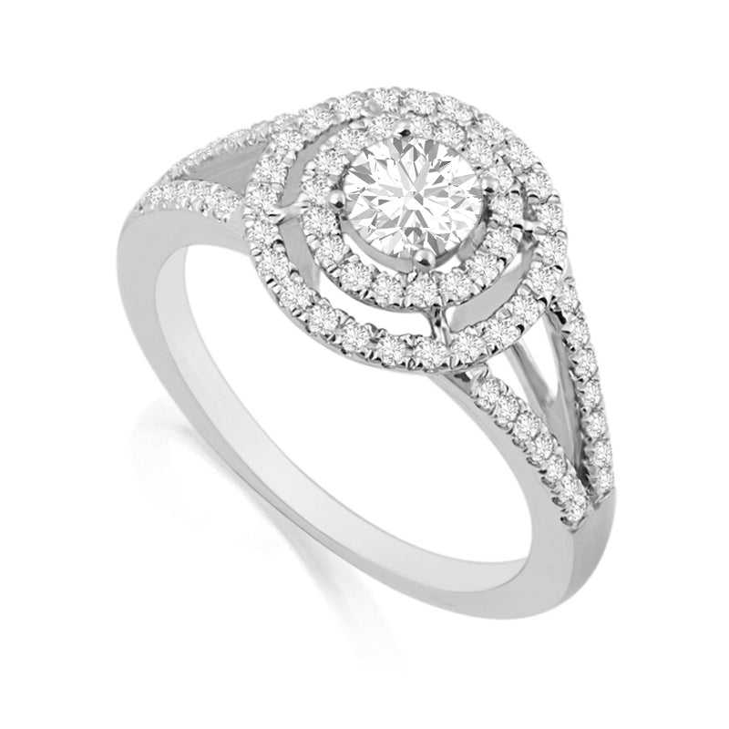 R-65432-AD-W Diamond Double Halo Cluster Ring