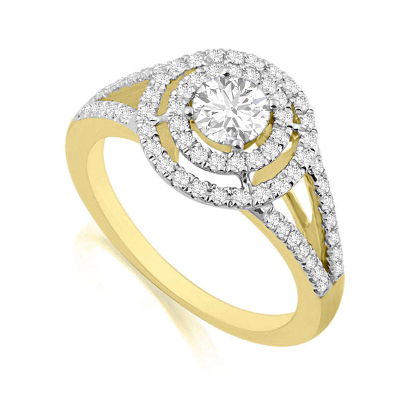 R-65432-AD-Y Diamond Double Halo Cluster Ring