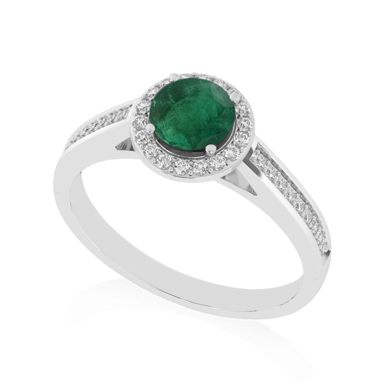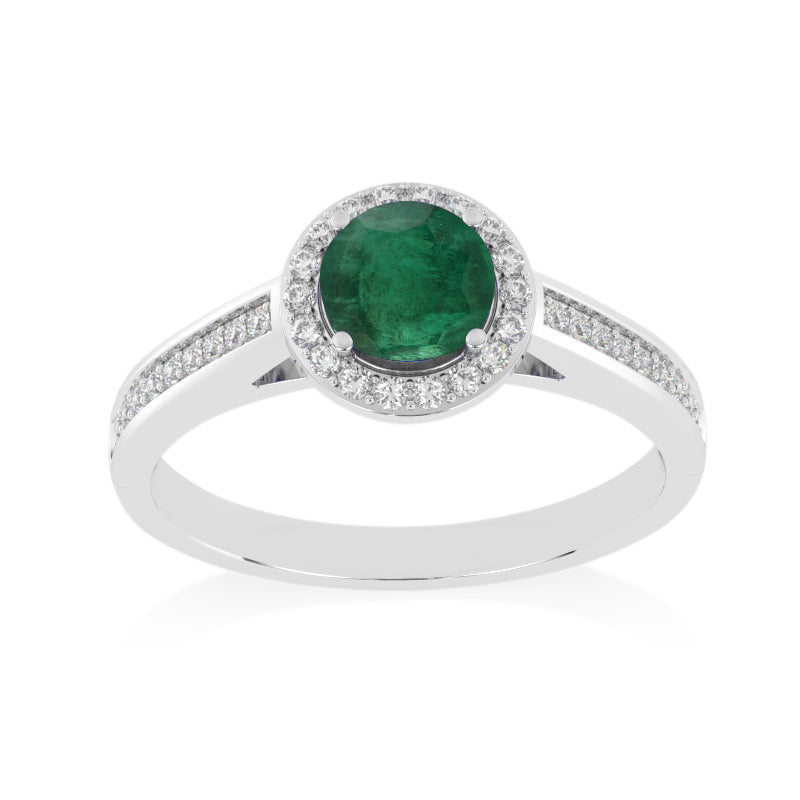 Description: Diamond & Emerald Halo Ring, Set with Round Cut Emerald & Brilliant Cut Diamonds, Set in 9ct or 18ct White Gold