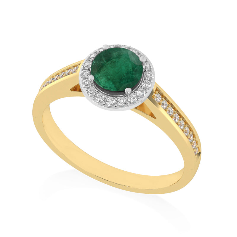 R-42346-EM-Y Diamond & Emerald Halo Ring