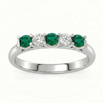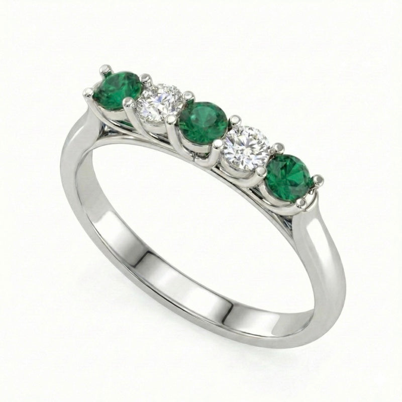 Description: Diamond & Emerald Five Stone Ring, Set with Three Round Emeralds & Two Brilliant Cut Diamonds, Set in 9ct or 18ct White Gold or Platinum