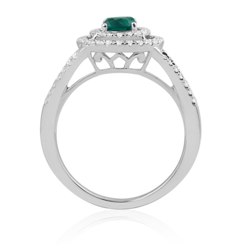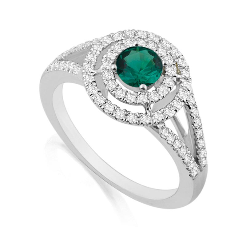 R-65432-EM-W Diamond & Emerald Double Halo Cluster Ring