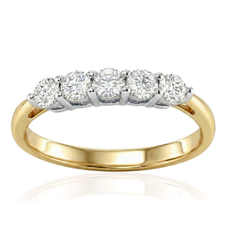 Description: Diamond Five Stone Ring, Set with Five Brilliant Cut Diamonds, Set in 9ct or 18ct Yellow Gold