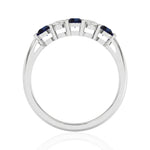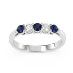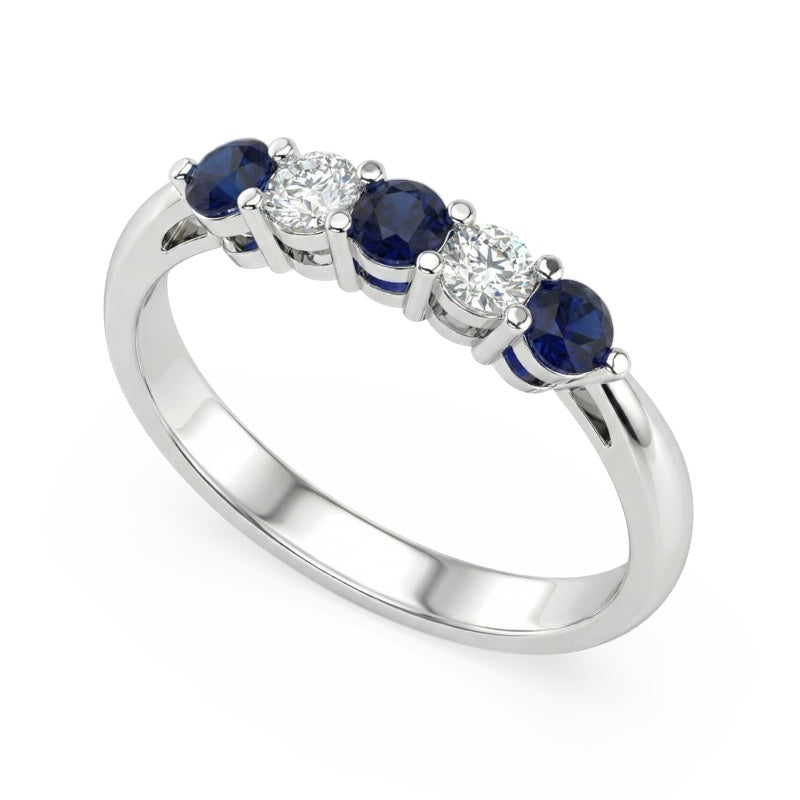 Description: Diamond & Sapphire Five Stone Ring, Set with Three Round Sapphires & Two Brilliant Cut Diamonds, Set in 9ct or 18ct White Gold or Platinum