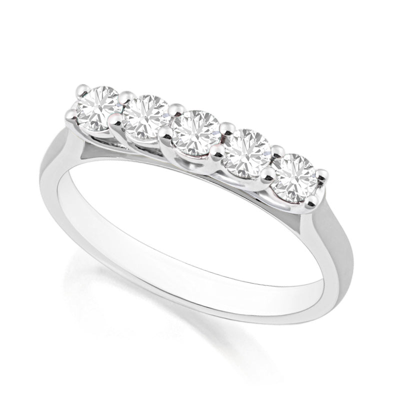 Description: Diamond Five Stone Ring, Set with Five Brilliant Cut Diamonds, Set in 9ct or 18ct White Gold