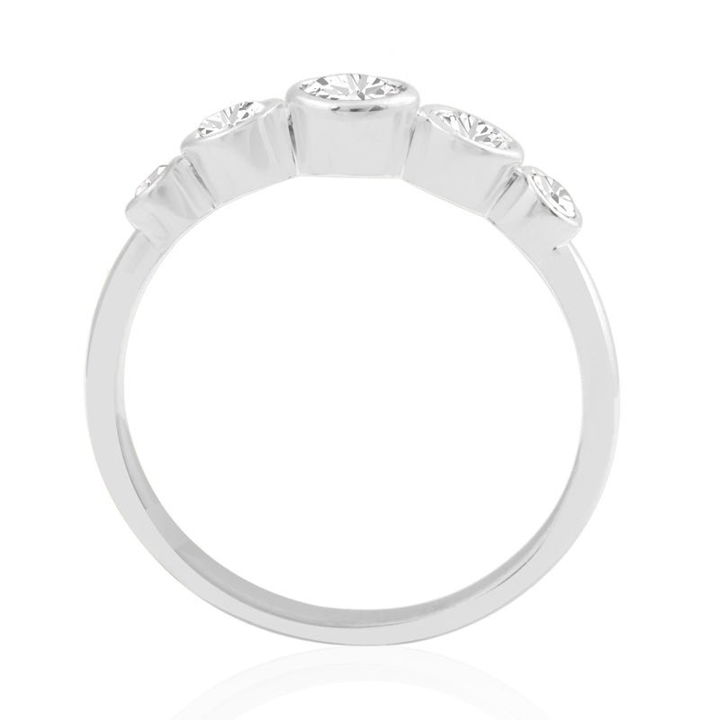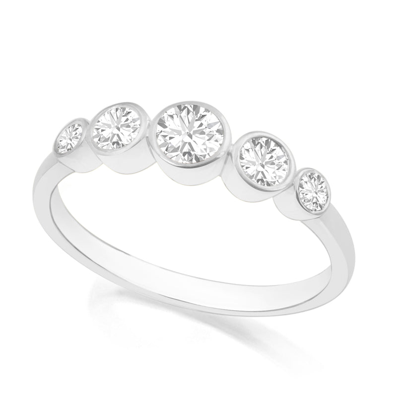 Description: Diamond Five Stone Ring, Set with Five Brilliant Cut Diamonds in a Rubover Setting, Set in 9ct or 18ct White Gold
