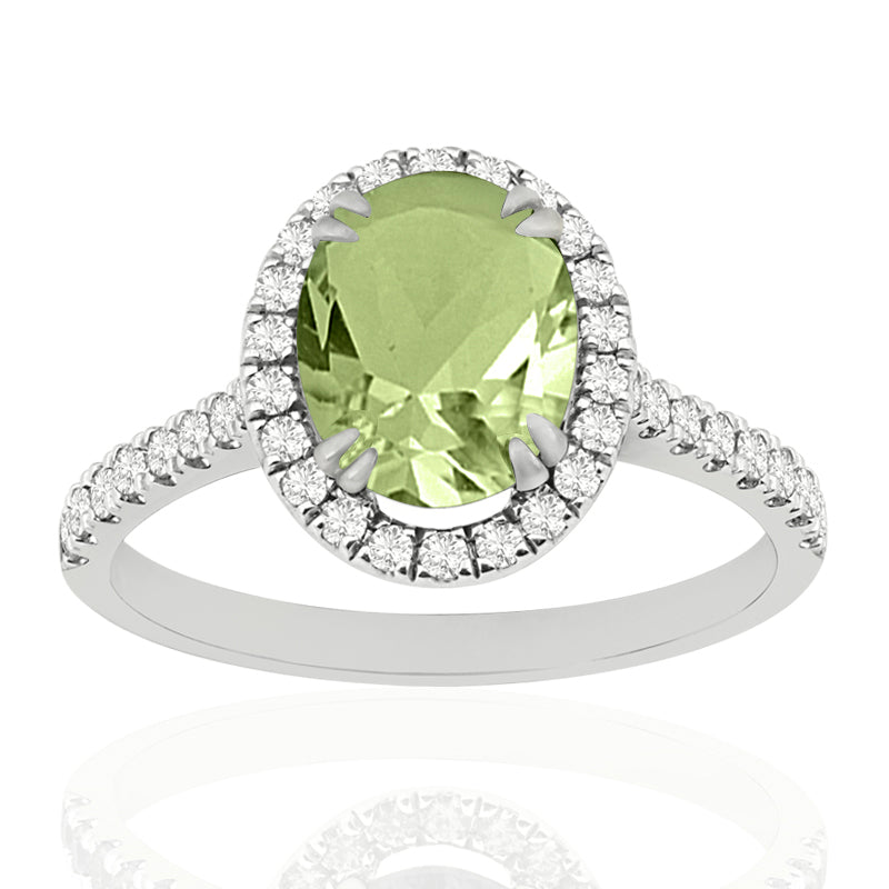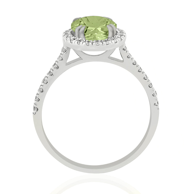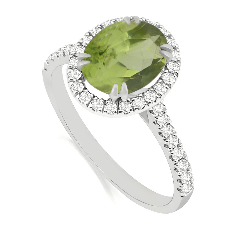 Description: Diamond & Peridot Cluster Ring, Set with Oval Cut Peridot & Brilliant Cut Diamonds, Set in 9ct or 18ct White Gold or Platinum