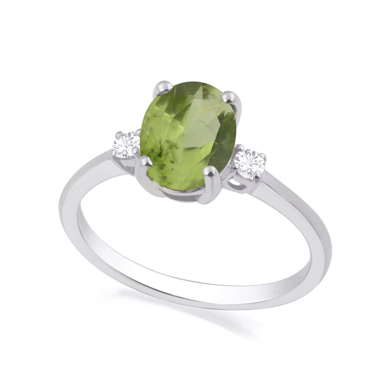 R-44663-PD-W Diamond & Peridot Three Stone Ring