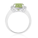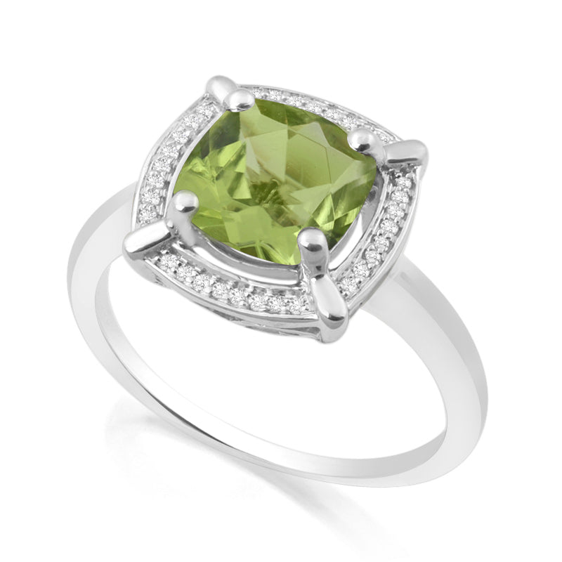 Description: Diamond & Peridot Cluster Ring, Set with Cushion Cut Peridot & Brilliant Cut Diamonds, Set in 9ct or 18ct White Gold