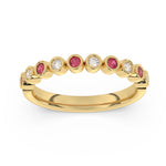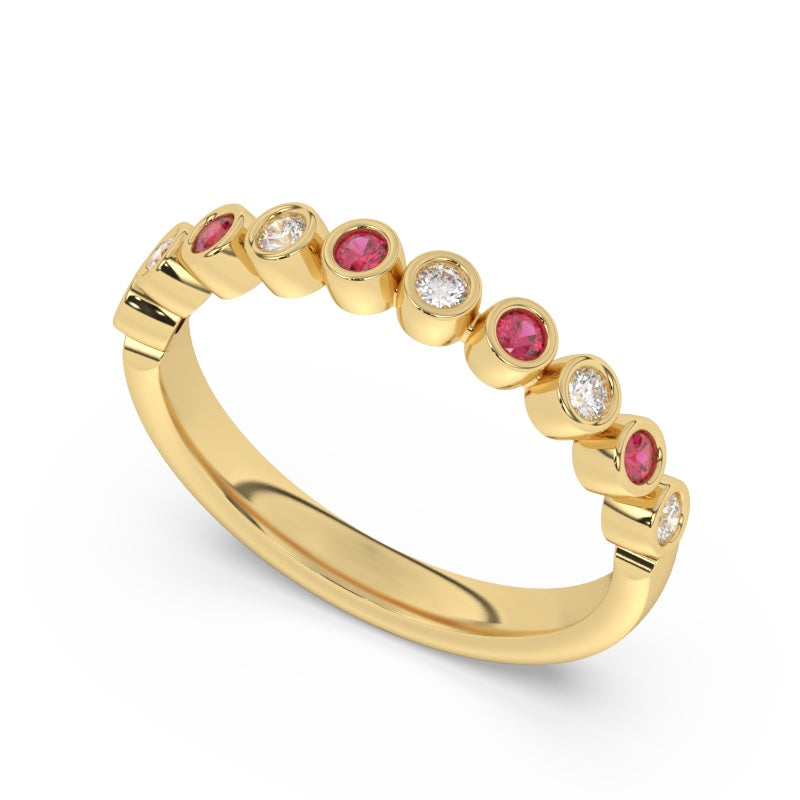 Description: Diamond & Ruby Half Eternity Ring, Set with Round Rubies & Brilliant Cut Diamonds, Set in 9ct or 18ct Yellow Gold