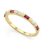 Description: Diamond & Ruby Half Eternity Ring, Set with Baguette Cut Rubies & Baguette Cut Diamonds, Set in 9ct or 18ct Yellow Gold