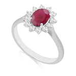 Description: Diamond & Ruby Cluster Ring, Set with Oval Cut Ruby & Twelve Brilliant Cut Diamonds, Set in 9ct or 18ct White Gold or Platinum