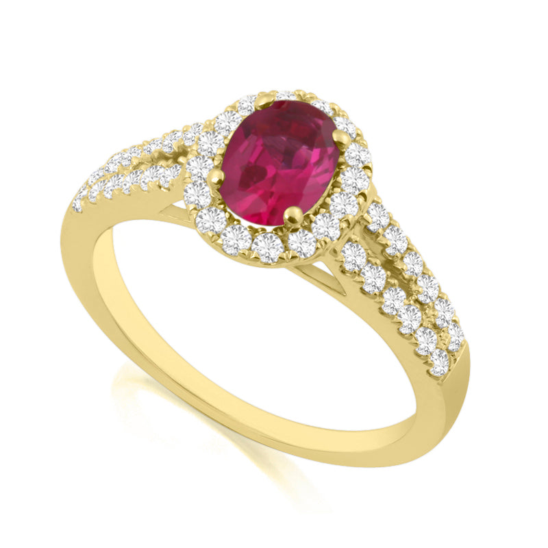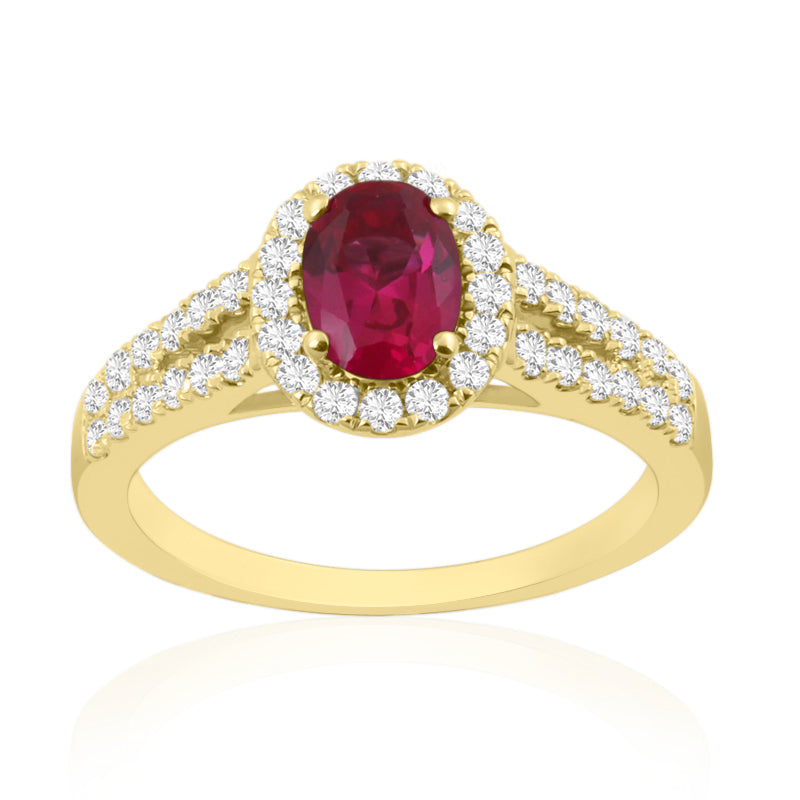 Description: Diamond & Ruby Cluster Ring, Set with Oval Cut Ruby & Brilliant Cut Diamonds, Set in 9ct or 18ct Yellow Gold