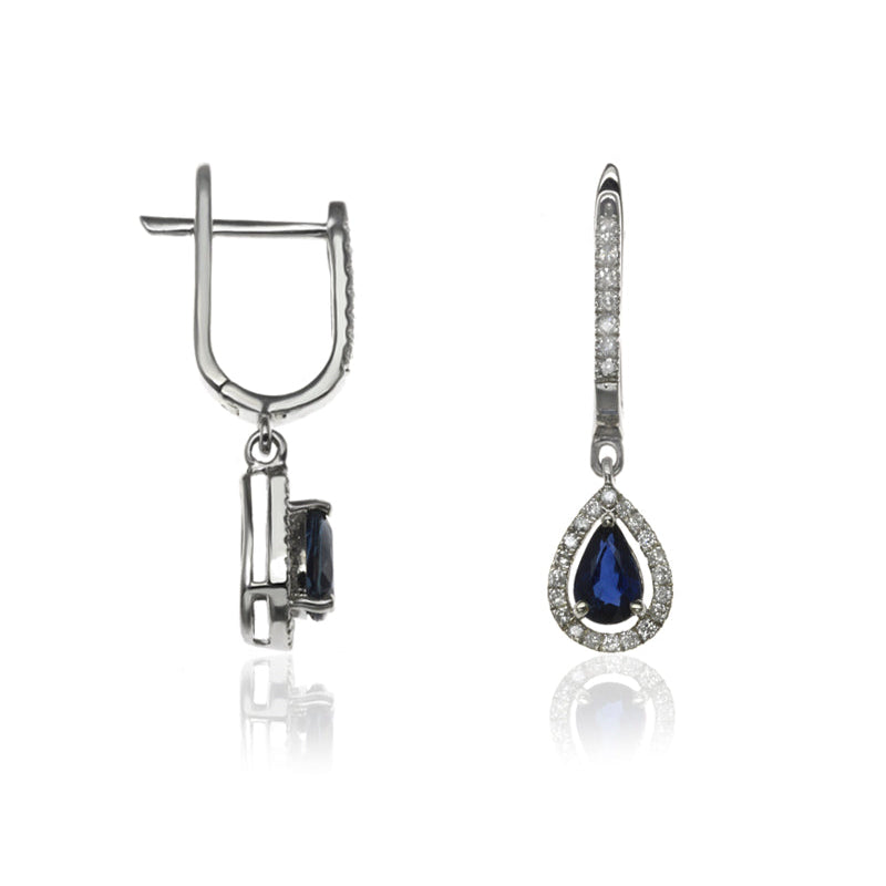 E-42348-SA-W Diamond & Sapphire Halo Drop Earrings