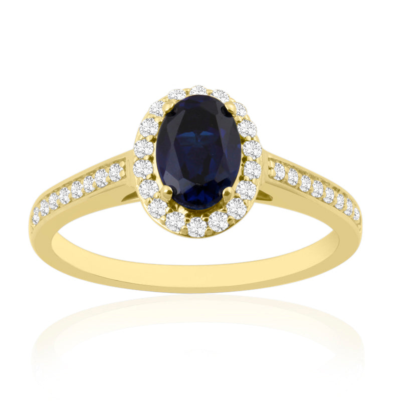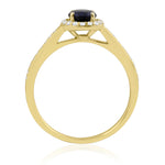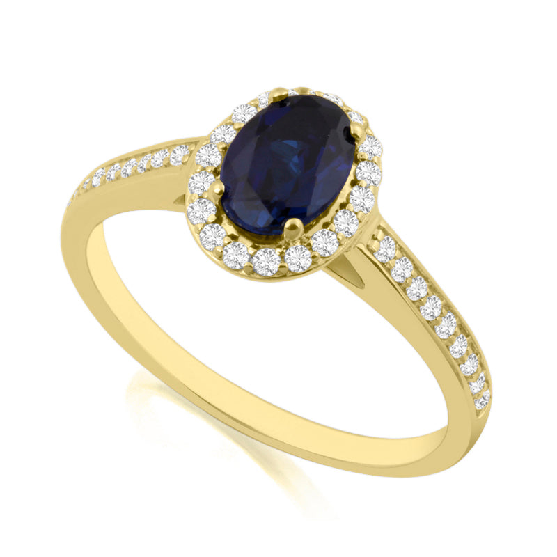 Description: Diamond & Sapphire Halo Ring, Set with Oval Cut Sapphire & Brilliant Cut Diamonds, Set in 9ct or 18ct Yellow Gold