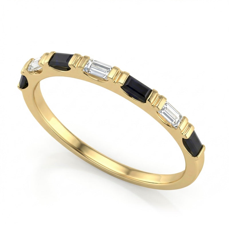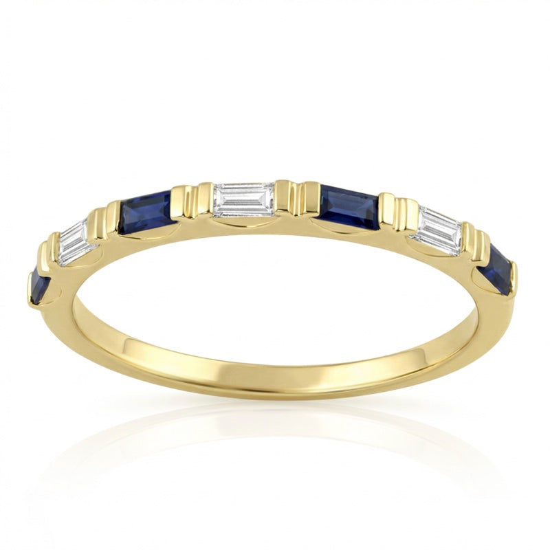 Description: Diamond & Sapphire Half Eternity Ring, Set with Baguette Cut Sapphires & Baguette Cut Diamonds, Set in 9ct or 18ct Yellow Gold
