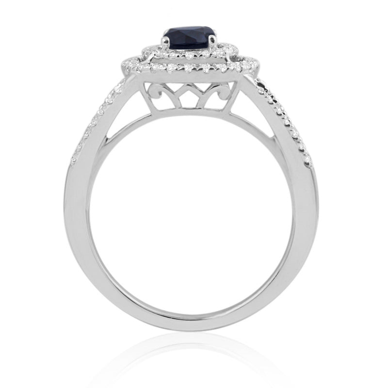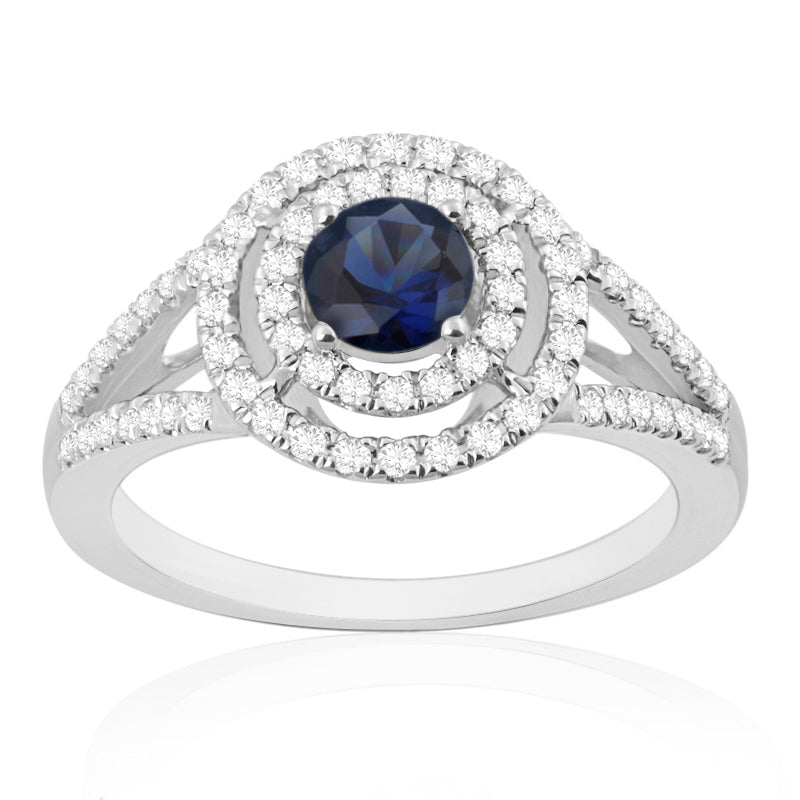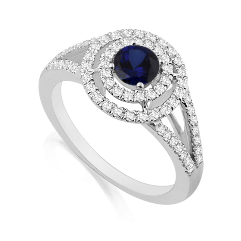 Description: Diamond & Sapphire Double Halo Cluster Ring, Set with Round Cut Sapphire & Brilliant Cut Diamonds, Set in 9ct or 18ct White Gold