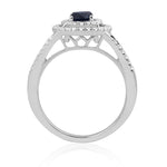 R-65432-SA-W Diamond & Sapphire Double Halo Cluster Ring