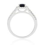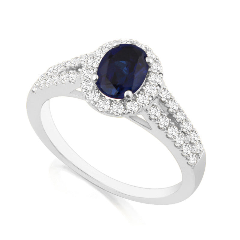 Description: Diamond & Sapphire Cluster Ring, Set with Oval Cut Sapphire & Brilliant Cut Diamonds, Set in 9ct or 18ct White Gold