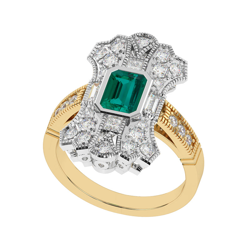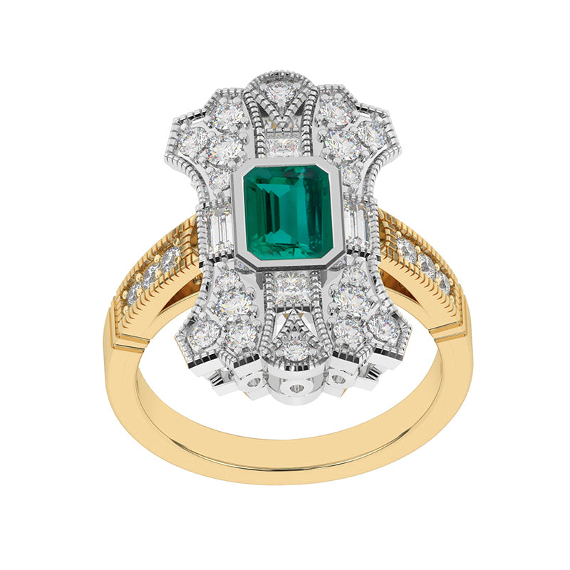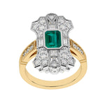 R-25205-EM-Y Diamond & Emerald Vintage Ring