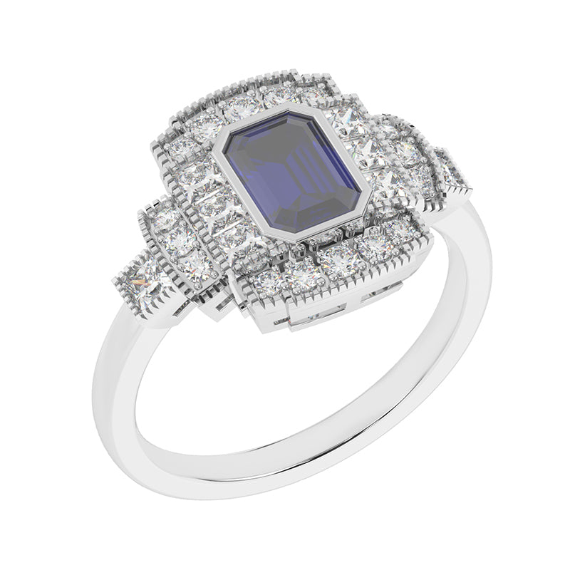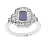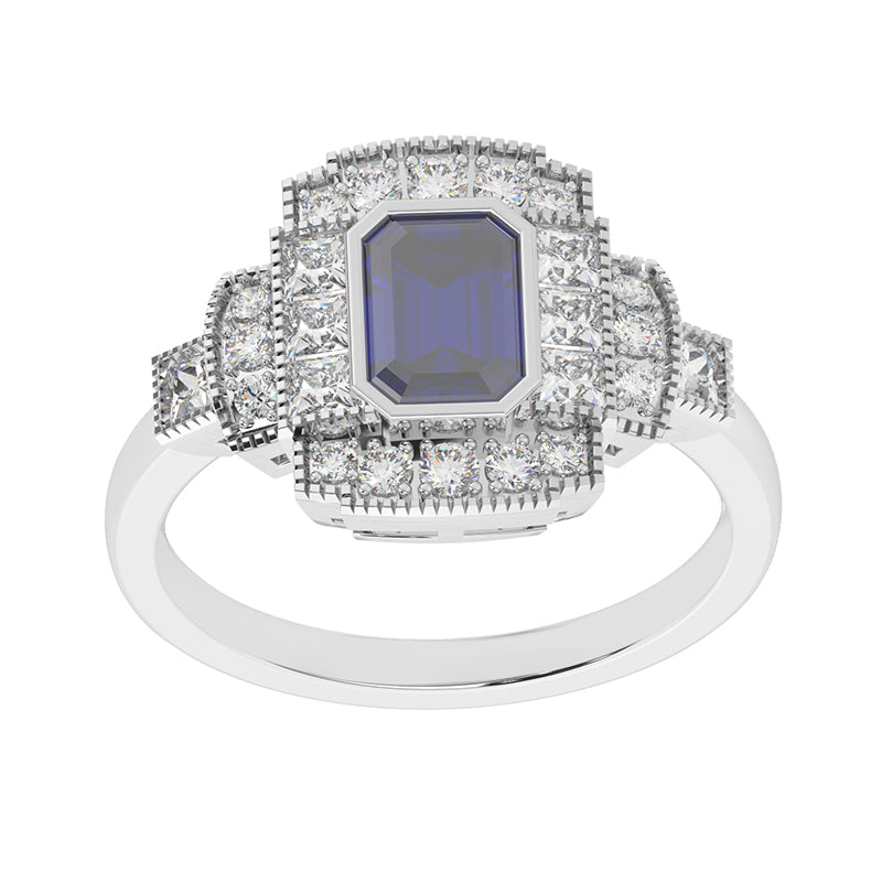 Description: Diamond & Sapphire Vintage Ring, Set with Octagon Cut Sapphire & Princess Cut & Brilliant Cut Diamonds, Set in 9ct or 18ct White Gold