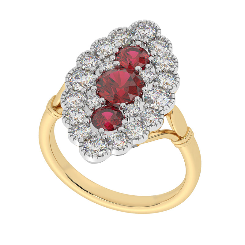 Description: Diamond & Ruby Vintage Ring, Set with Round Cut Rubies & Brilliant Cut Diamonds, Set in 9ct or 18ct Yellow Gold