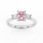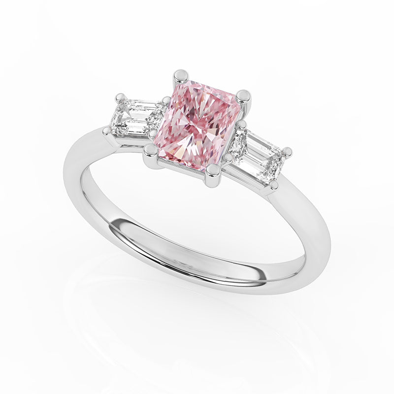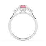 Description: Diamond Three Stone Ring, Set with Emerald Cut Lab Pink Diamond & Two Emerald Cut Lab Diamonds, Set in 9ct or 18ct White Gold or Platinum (Verifiably IGI Report Included)