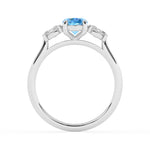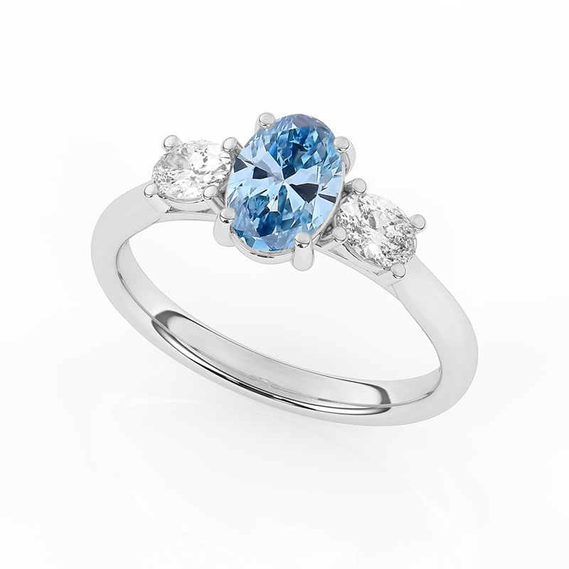 Description: Diamond Three Stone Ring, Set with Oval Cut Lab Blue Diamond & Two Oval Cut Lab Diamonds, Set in 9ct or 18ct White Gold or Platinum (Verifiably IGI Report Included)