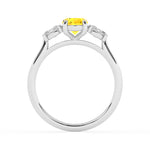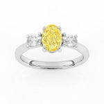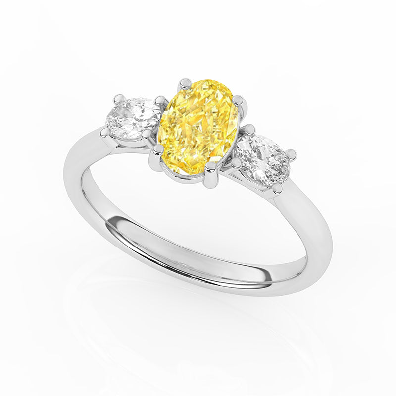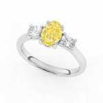 Description: Diamond Three Stone Ring, Set with Oval Cut Lab Yellow Diamond & Two Oval Cut Lab Diamonds, Set in 9ct or 18ct White Gold or Platinum (Verifiably IGI Report Included)