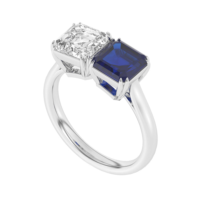 R-82210-SA-W Lab Diamond & Sapphire Two Stone Ring