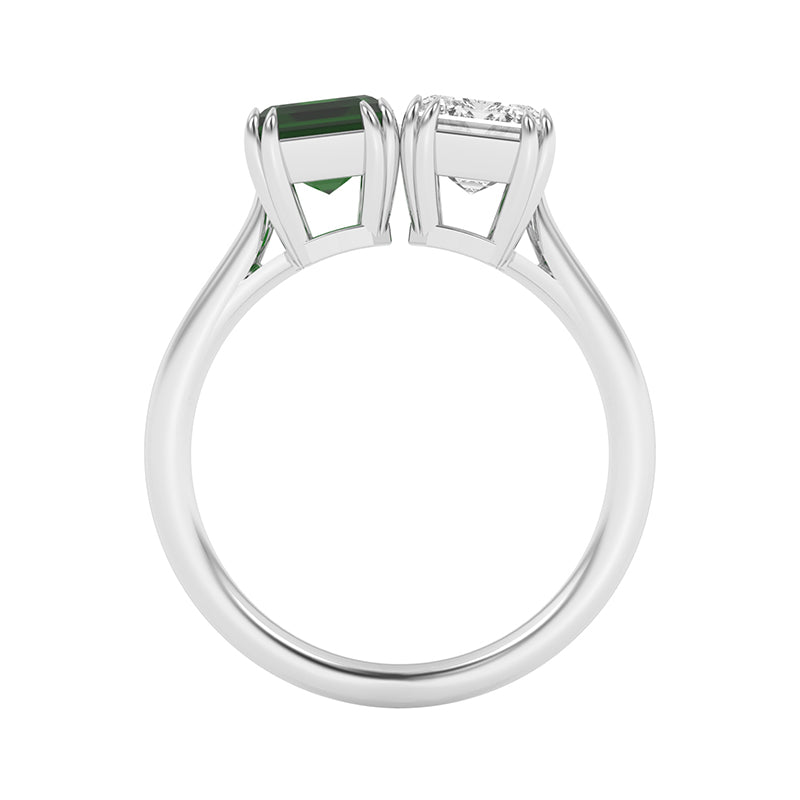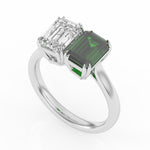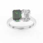 R-82211-EM-W Lab Diamond & Emerald Two Stone Ring