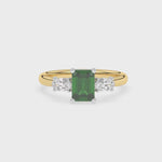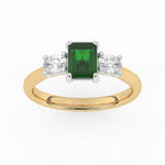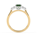 R-82412-EM-Y Lab Diamond & Emerald Three Stone Ring