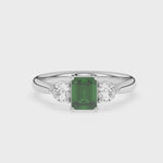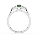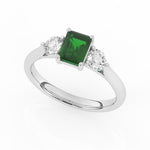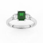 R-82413-EM-W Lab Diamond & Emerald Three Stone Ring