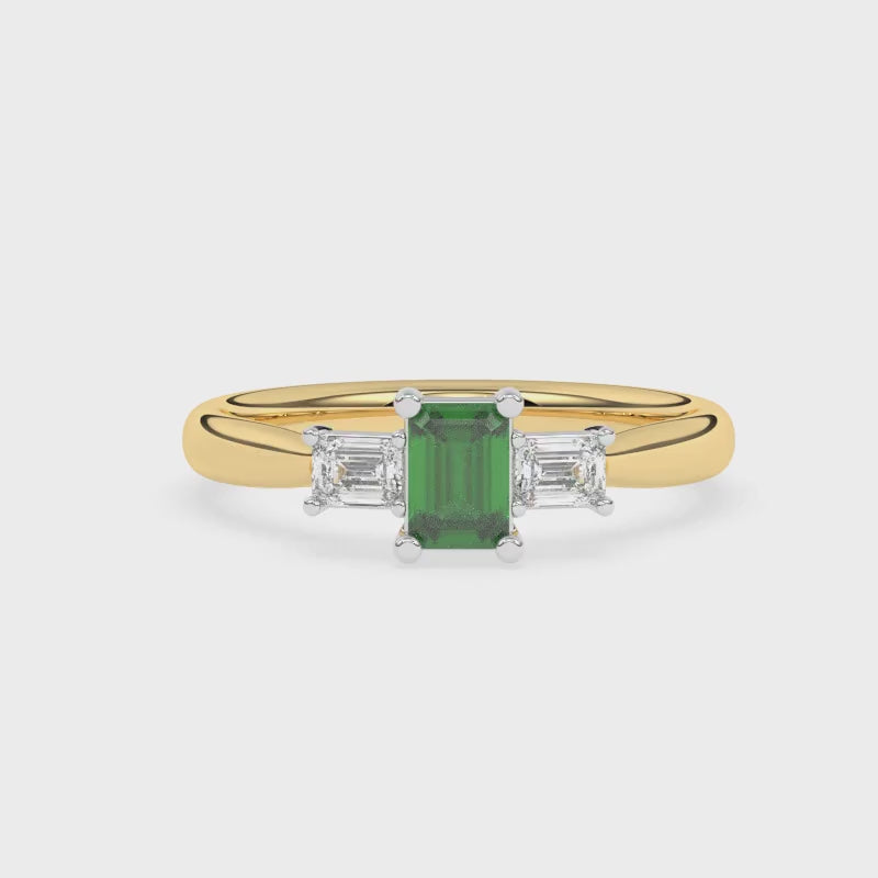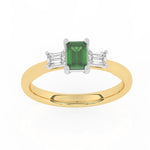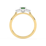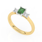 Description: Diamond Three Stone Ring, Set with Emerald Cut Lab Emerald & Two Emerald Cut Lab Diamonds, Set in 9ct or 18ct Yellow Gold