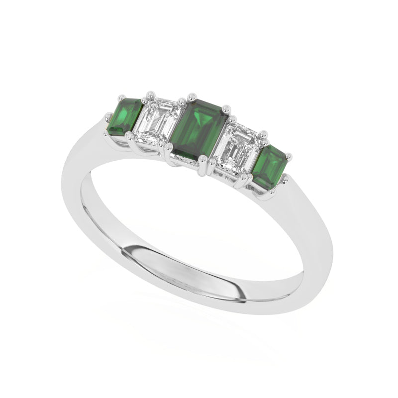 Description: Diamond & Emerald Five Stone Ring, Set with Emerald Cut Lab Emeralds & Emerald Cut Lab Diamonds, Set in 9ct or 18ct White Gold or Platinum
