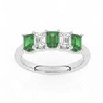 Description: Diamond & Emerald Five Stone Ring, Set with Emerald Cut Lab Emeralds & Emerald Cut Lab Diamonds, Set in 9ct or 18ct White Gold or Platinum