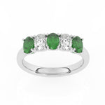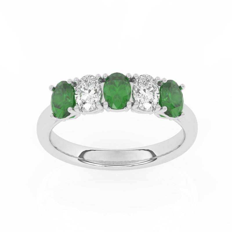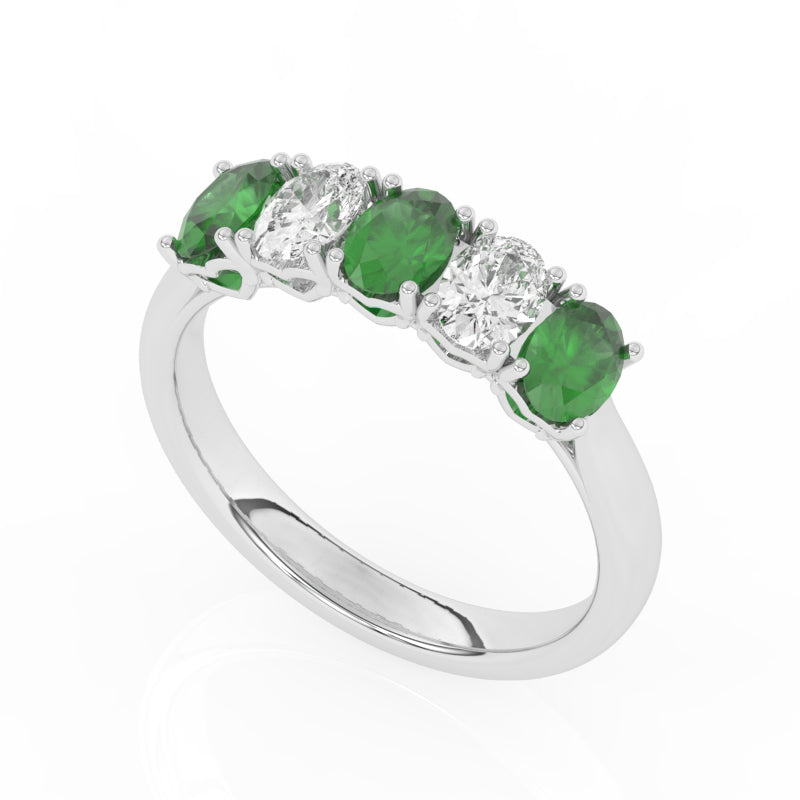 Diamond & Emerald Five Stone Ring, Set with Three Oval Cut Lab Emeralds & Two Oval Cut Lab Diamonds, Set in 9ct or 18ct White Gold or Platinum