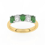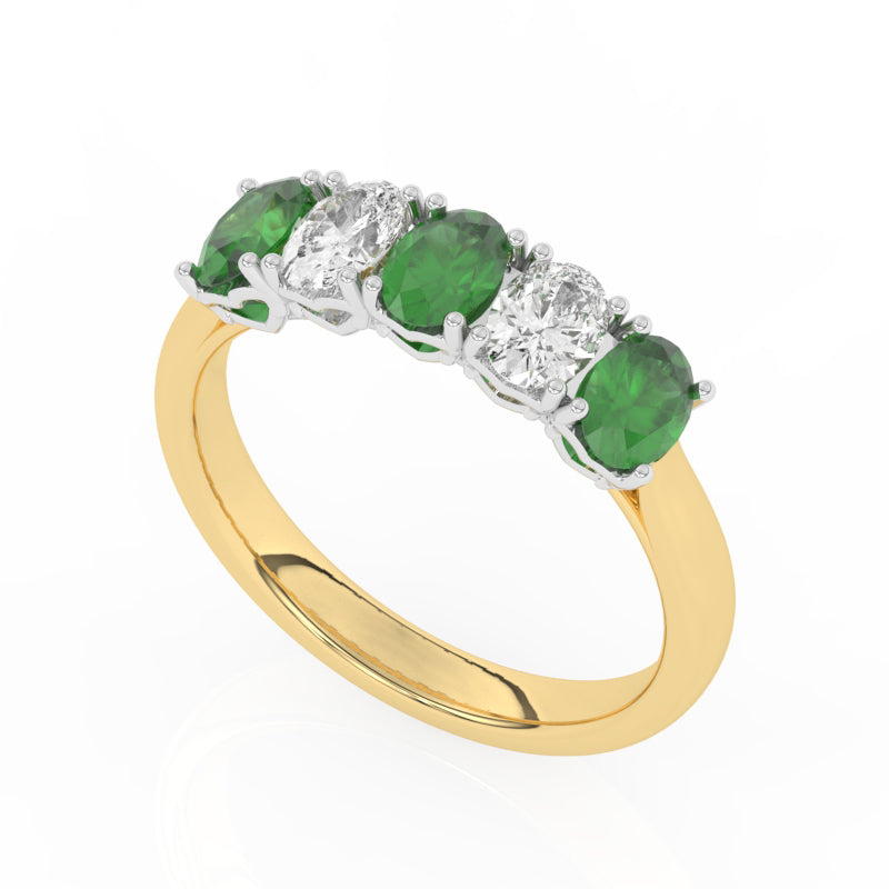 Diamond & Emerald Five Stone Ring, Set with Three Oval Cut Lab Emeralds & Two Oval Cut Lab Diamonds, Set in 9ct or 18ct Yellow Gold