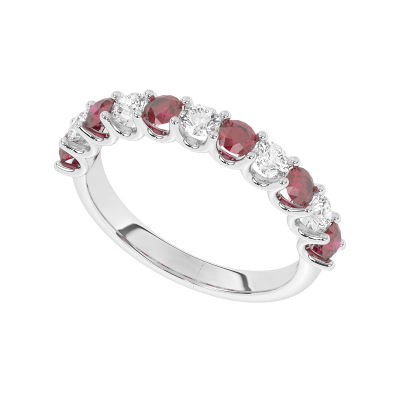 Description: Diamond & Ruby Eleven Stone Ring, Set with Six Round Lab Rubies & Five Brilliant Cut Lab Diamonds, Set in 9ct or 18ct White Gold or Platinum