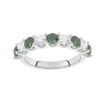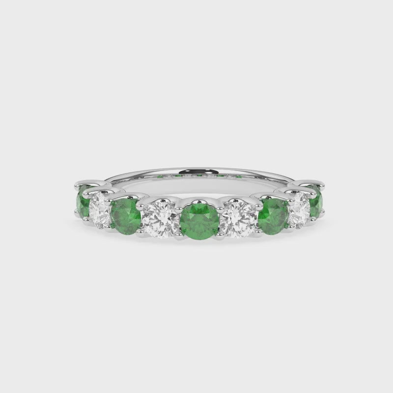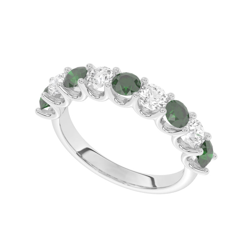 Description: Diamond & Emerald Nine Stone Ring, Set with Five Round Lab Emeralds & Four Brilliant Cut Lab Diamonds, Set in 9ct or 18ct White Gold or Platinum