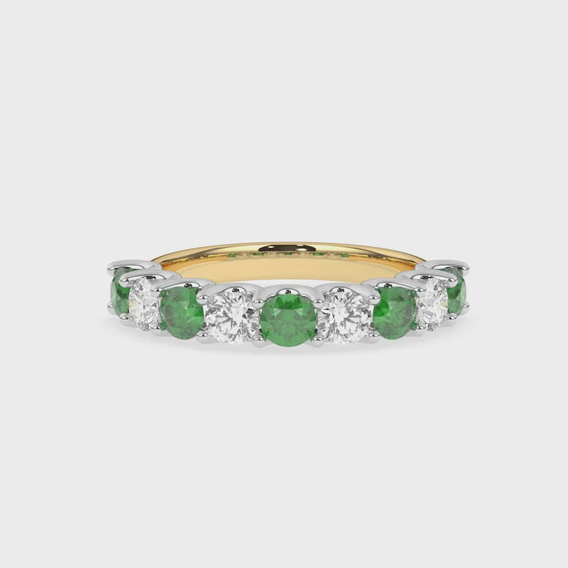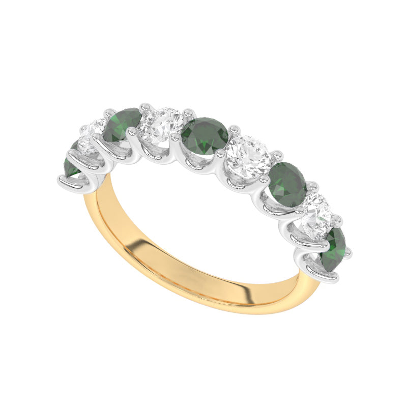 Description: Diamond & Emerald Nine Stone Ring, Set with Five Round Lab Emeralds & Four Brilliant Cut Lab Diamonds, Set in 9ct or 18ct Yellow Gold
