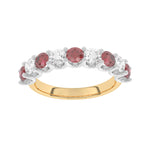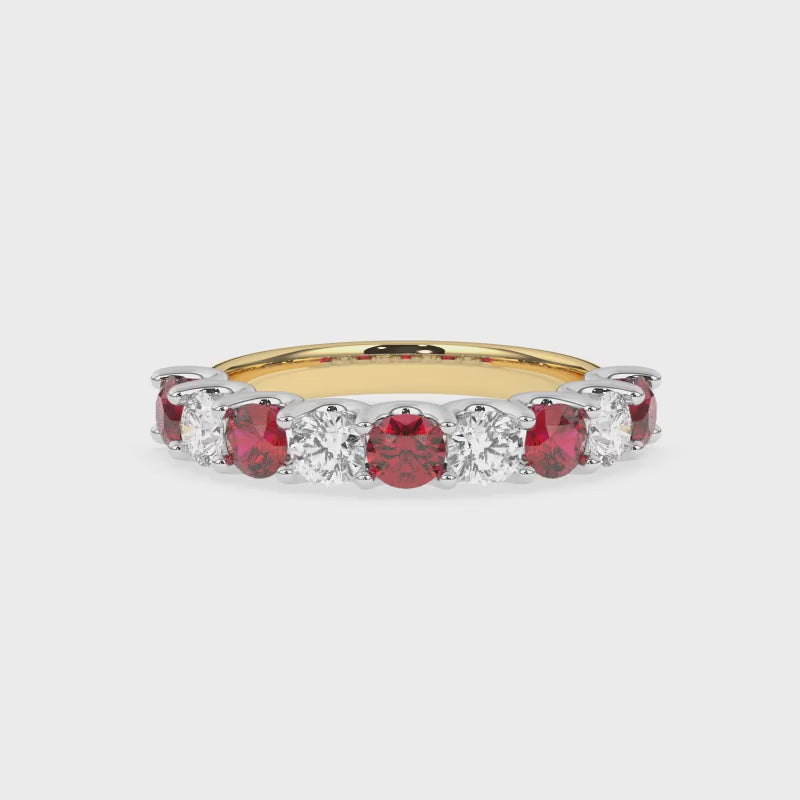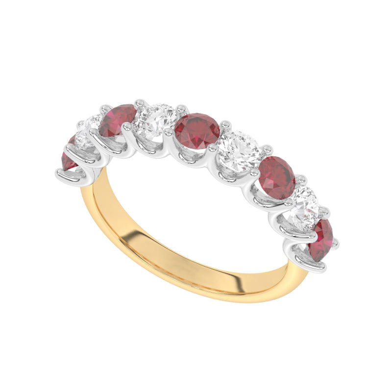 Description: Diamond & Ruby Nine Stone Ring, Set with Five Round Lab Rubies & Four Brilliant Cut Lab Diamonds, Set in 9ct or 18ct Yellow Gold
