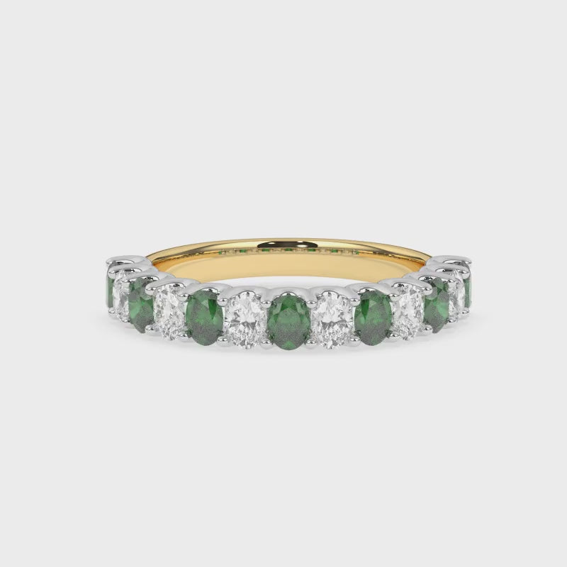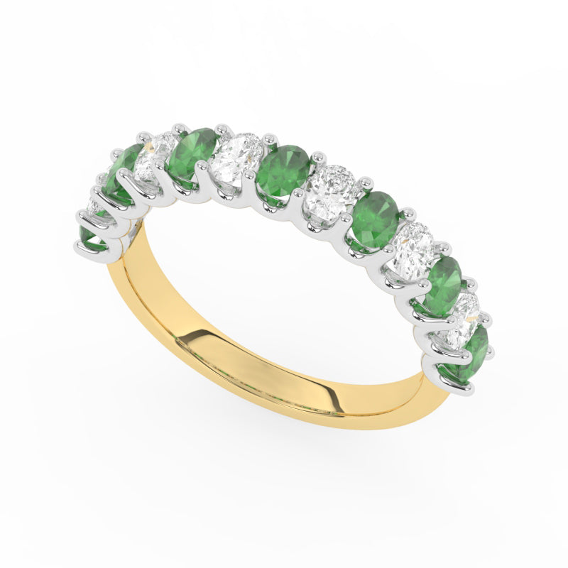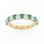 Description: Diamond & Emerald Thirteen Stone Ring, Set with Seven Oval Lab Emeralds & Six Oval Cut Lab Diamonds, Set in 9ct or 18ct Yellow Gold