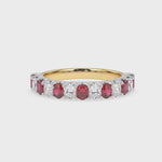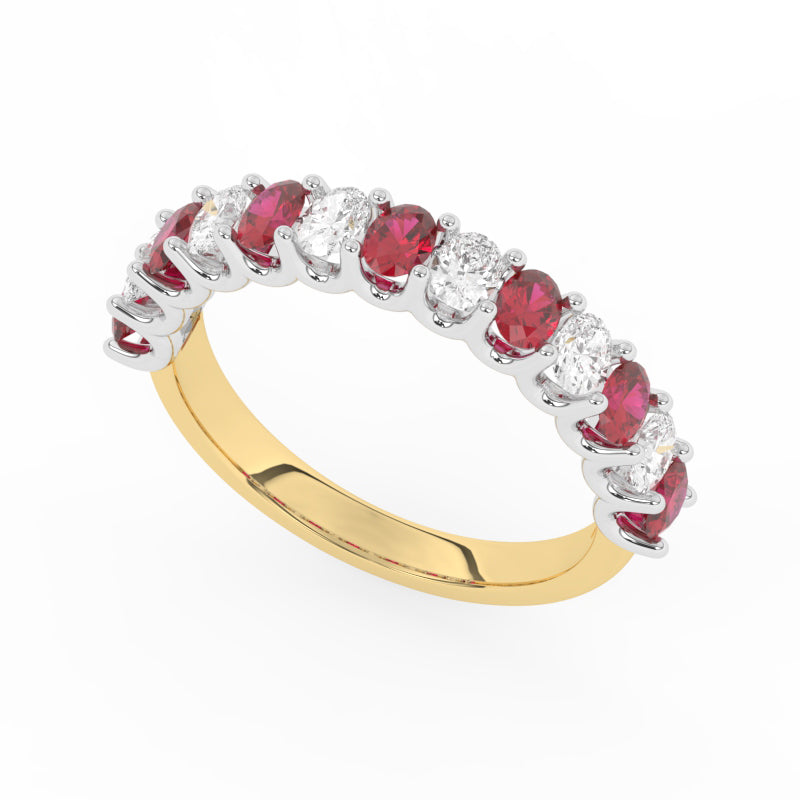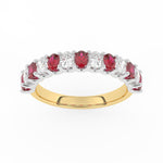 Description: Diamond & Ruby Thirteen Stone Ring, Set with Seven Oval Lab Rubies & Six Oval Cut Lab Diamonds, Set in 9ct or 18ct Yellow Gold