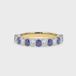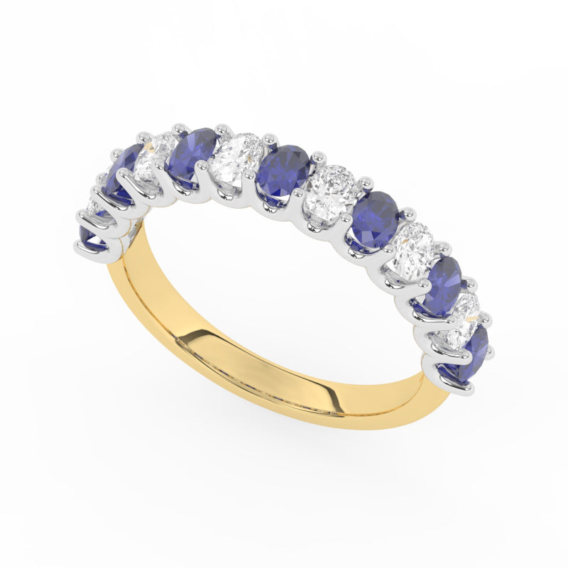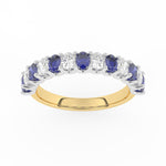 Description: Diamond & Sapphire Thirteen Stone Ring, Set with Seven Oval Lab Sapphires & Six Oval Cut Lab Diamonds, Set in 9ct or 18ct White Gold